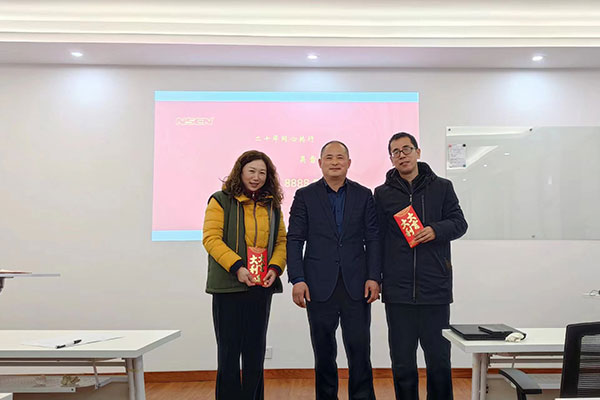陈牧丹和吴雪松入职公司已经20年啦。总经理亲自为两位同事颁发“二十年同心共行”大奖,奖金每人58888.00元。同期还为徐文波等同事颁发了特别贡献奖,奖金为每人28888.00元。 同事们都纷纷表示,期待陪伴J9.COM官方网站电子走过下一个二十年,期待下一个“二十年同心共行奖”的颁发。